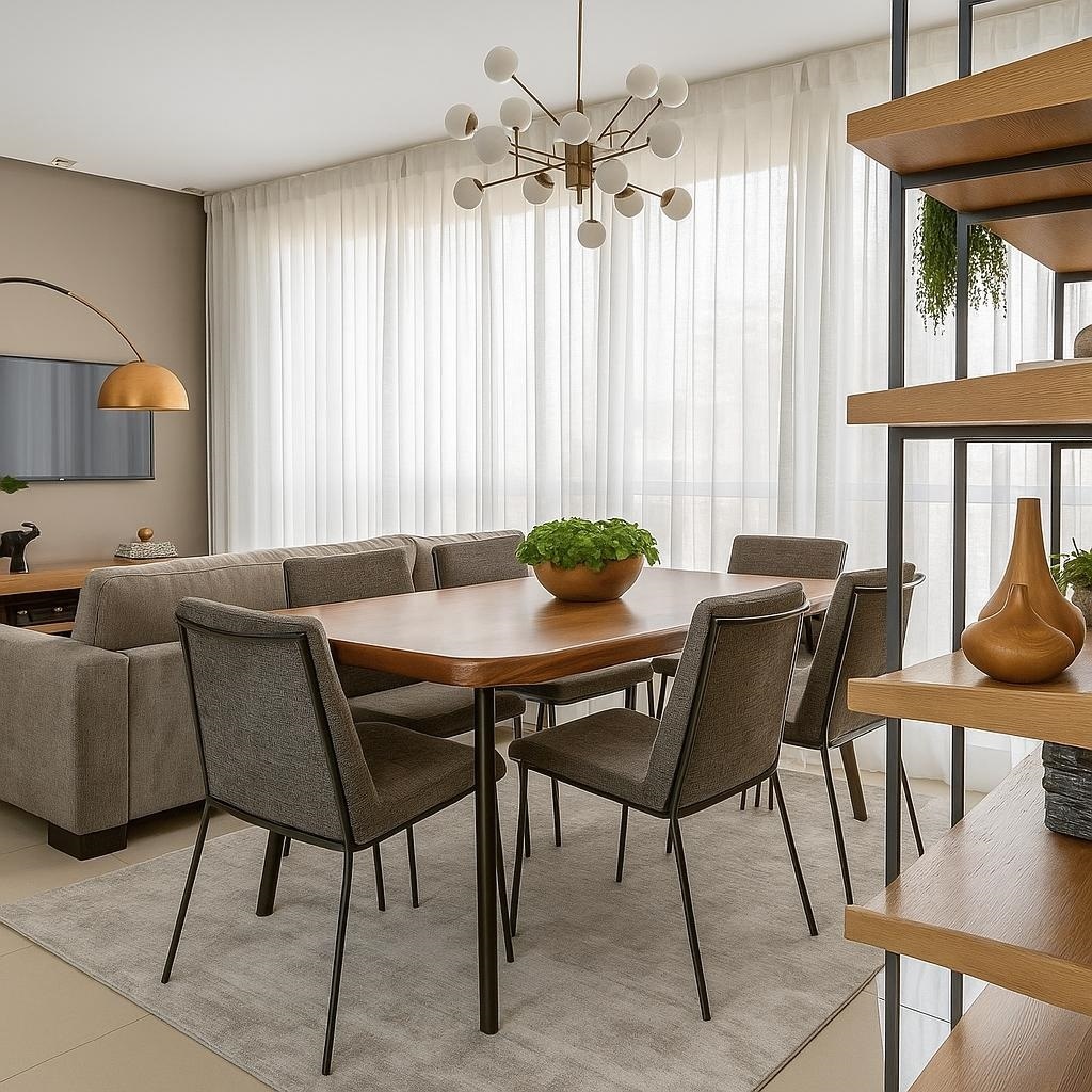 Uma integração harmoniosa combinando design contemporâneo, conforto, estética, metais e tecidos neutros!