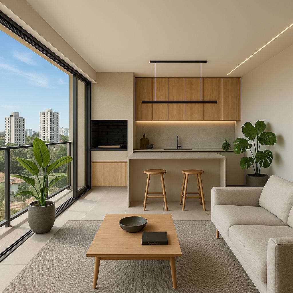 Ambiente moderno combinando área gourmet e área de estar, conforto e sofisticação aproveitando a luz natural e a vista externa!